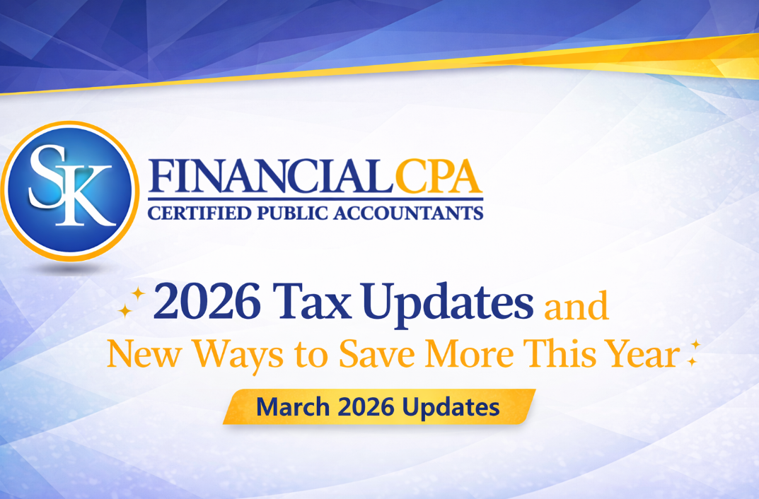 Welcome to your March 2026 update from SK Financial CPA. This month we’re sharing the latest tax changes, new deductions you can actually use for 2025, and a few important shifts in the economy that could affect your income, expenses, and planning decisions.